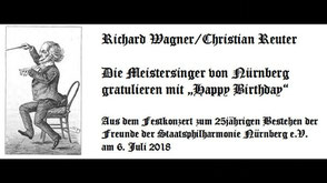 Vorspiel zu Wagners Oper "Die Meistersinger von Nürnberg", bearbeitet für Bläserquintett, Klavier, Schlaginstrumente und Streicher.Aus dem Festkonzert "25 Jahre Freunde der Staatsphilharmonie Nürnberg e.V." (2018)